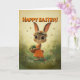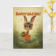 Cartão Cute Bunny in Orange Dress with Easter Basket