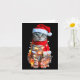 Cartão Cute Christmas Tabby Cat In Lights Santa Hat For K