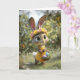 Cartão Cute Easter Bunny w/ Flower Crown & Basket of Eggs