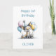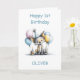 Make his first birthday even more memorable with this cute fox birthday card. The lovable fox is wearing a party hat and is sitting next to a birthday cupcake with a burning candle while surrounded by balloons.