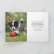 This dog lovers birthday card features a puppy border collie playing with a red ball. The card has a Happy Birthday on the front and an inside message. A template design that you can edit to add your own words or image. "AI-generated artwork with design direction by Susang6"