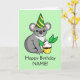 Celebrate your birthday in true Aussie fashion with this adorable koala in a green and gold party hat. He even has a little birthday cupcake made with eucalyptus leaves!