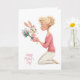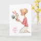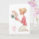 Cartão Cute Little Girl Bunny Bringing Mama Flowers