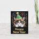 Cartão Cute Party Cat Happy New Year Funny New Year’s Eve