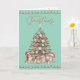 Send a smile this season with this adorable Christmas card featuring a watercolour Christmas tree surrounded by cute pets in Santa hats — a puppy, kitten, and their festive friends sitting beside holiday presents.