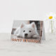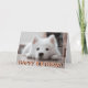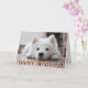 Adorable white, fluffy samoyed puppy birthday card. Text on front reads "Happy birthday!" and text inside reads "Hope you have a great day!"