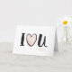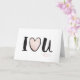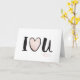 Simples e fofo, este "Eu amo você" em letra cursiva preta apresenta uma textura de rosa dourado falso dentro do coração. Lábios rosa dourado sublinham a letra U, para selar seu amor com um beijo. Ótimo cartão de dia dos namorados para mostrar seu amor e afeto. Combine com flores, chocolates ou outros presentes que você planeja dar ao seu namorado.