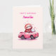 Cartão Cute Sloth in a Pink Convertible Birthday