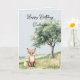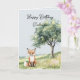 Cartão Cute Smiling Fox Field of Flowers Tree Birthday