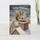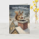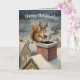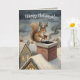 Cartão Cute Squirrel Playing Santa Drawing Christmas