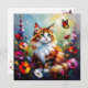 Cartão Cute Whimsical Cat, Flowers and Butterflies