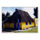 Arquitetura cozumel que se parece com arte folclórica com amarelo vívido e azul em um local fora da pista batida na Península de Yucatan do México. Algumas famílias se esforçaram muito para fazer dessa casa de telhado tão charmosa quanto possível. As portas e os caixilhos das janelas, bem como um posto no lado esquerdo da parede frontal, estão cobertos por designs de arte folclórica em cores vivas e primárias.