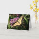 Este lindo design apresenta uma foto aproximada de uma borboleta rabo-de-andorinha preta em um arbusto de borboleta roxo com as palavras "Pensando em Você" em tipografia cursiva. A saudação interna diz: "Espero que isso torne seu dia mais brilhante sabendo o quanto os outros se importam". Você pode alterar qualquer uma das palavras para o que quiser. Se precisar de ajuda com a personalização, por favor envie um e-mail para zazzlevibes@gmail.com. Visite nossa loja www.zazzle.com/Naturosity para mais itens exclusivos. Obrigada, Karen (foto de Karen Hall©)