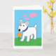 Cartão bonito e colorido de uns desenhos animados felizes bull terrier que aprecia o ar livre! Divertimento, cartão bonito para alguma ocasião.