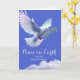 Da nossa família à sua, cartão de cumprimentos de Natal. Por isso, o meu coração está satisfeito, e a minha glória regozija-se: a minha carne também descansará na esperança. Mensagem Psalm 16:9 KJV dentro na placa. Altere o texto do cobrir conforme desejar, adicionando o nome da sua família. Ilustração digital de uma pomba de paz que abriga um galho de oliveira. Arte, imagem e direitos de autor versos © Shoaff Ballanger Studios, 2024.