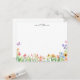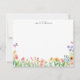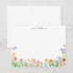 Um cartão de nota suave com um delicado campo floral de aquarela posicionado ao longo da borda inferior do design. Flores suaves, folhagens e borboletas criam um acento romântico e natural que dá ao cartão um sentimento fresco e alegre.