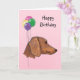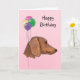 Cartões de aniversário personalizados relacionados ao Dachshund usando balões com pinturas originais únicas de óleo, desenhos adicionados a designs digitais. PARA PERSONALIZAR OU ALTERAR O TIPO DE ALTERAÇÃO OU O ESQUEMA DE COR DO DESIGN * ADICIONAR A IMAGEM FAVORITA * ADICIONAR, ALTERAR TEXTO OU EXCLUIR PARA DEIXAR O VAZIO.