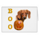 Sua raça AKC diz Feliz Halloween com um BOO! Trate alguém para um presente de Halloween Dachshund em uma camisa, caneca, cartão, chaveiro, mouse pad e muito mais.