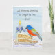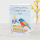 This charming watercolor and pen illustration features a Painted Bunting enjoying a slice of carrot cake, a nod to February’s National Carrot Cake Month, with a soft iris flower thoughtfully styled as a birthday candle holder. The iris, a traditional February birth flower, adds a meaningful seasonal detail. Together, these February-inspired elements create a warm, artistic birthday card perfect for celebrating someone born in this quiet winter month.