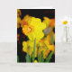 Fotografia de um daffodil amarelo na face de uma placa de 5 x 7 polegadas. O texto do dentro diz "Pensando em você."