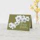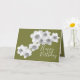 Fotografia impressionante com um close-up de um conjunto de lindos narcisos brancos contrastados com um fundo de cor verde. Esta placa é oferecida em vários planos de fundo de cores diferentes. As margaridas cobrir a frente deste cartão que pode ser usado como cartões de agradecimentos, cartão de aniversário ou qualquer outro cartão de sua escolha. Personalize-o com seu texto e/ou imagens para torná-lo de um tipo!