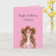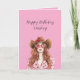 Cartão Dama de Cabelo Vermelho Caubói Corações Aniversári