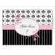 Um cartão na moda do número da mesa para uma recepção de casamento com uma cor damasco preto e branco chique nas riscas superiores e sassy na parte inferior, dividido por um quadro floral cor-de-rosa feminino. Personalize adicionando o número da mesa.