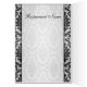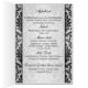 Damasco preto em um cartão prateado do Menu de Casamento. Você pode ajustar o texto de acordo com as suas necessidades.