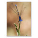 A dançarina de anel azul-masculino úmida (31-36 mm) pousa, depois voava e pousava novamente num pedaço de grama. Quando ele aterrisa, suas asas ainda estão ligeiramente espalhadas fora de sua luta anterior. Os dançarinos de anel azul são uma visão comum no sudoeste do verão. Este macho foi encontrado em Gilbert, Arizona. Foto de Ruth Jolly.