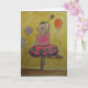 a watercolor print of a dancing pig surrounded by balloons. Holding a stick with a star on top greeting card