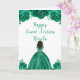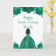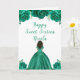 Este doce cartão de aniversário de 16 anos apresenta flores florais verdes, brilhantes, e uma bela princesa com pele escura e um vestido elegante. Isto é perfeito para uma doce festa de aniversário de dezesseis.