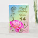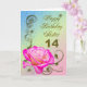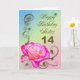 Uma rosa rosa elegante em um plano de trabalho de rolagem de ouro. Uma bela carta que agradará a sua irmã no seu aniversário de 14.
