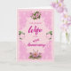 Um cartão de aniversário de 49 anos para sua esposa. Uma elegante filigrana em rosa destaca as quatro rosas rosas. O fundo é um padrão de flores rosa pálido. Um cartão encantador para enviar à sua esposa no aniversário de casamento.