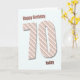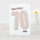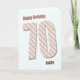 Um cartão de aniversário de 70 muito moderno. Esta carta é realmente fabulosa. Grandes letras em listras modernas num fundo azul. Personalize para sua própria mensagem exclusiva.