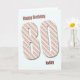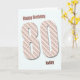 Um cartão de aniversário de 80 muito moderno. Esta carta é realmente fabulosa. Grandes letras em listras modernas num fundo azul. Personalize para sua própria mensagem exclusiva.