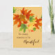 Cartão de saudação mostrado com um bonito outono sai impressão com um dentro de saudação de Ação de Graças. Personalize este cartão ou comprar como está.