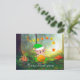 Lindo cartão de Ação de Graças com folhas de outono coloridas e elfo fofo na floresta. Todo o texto pode ser personalizado.