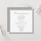 Este convite é elegantemente projetado com um tema de cores cinza e branco simples e limpo em mente, apresentando um design de tipografia elegante. Personalize com suas informações ou personalize-o clicando no botão "personalizar" para alterar qualquer um dos elementos. A parte de trás do convite é uma tonalidade correspondente de cinza pálido.