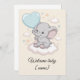 Não há maneira mais doce de dizer “Bem-vindo, Bebê” do que com este lindo cartão de chuvade de bebê. Um pequeno elefante fofo senta-se em uma nuvem fofa, segurando um balão de coração azul, cercado por estrelas pastéis — a mistura perfeita de suave e aconchegante. Personalize-o com o nome do bebê para torná-lo ainda mais especial. Ótimo para uma chuvade de bebê de menino, como lembrança, ou apenas para adicionar um pouco mais de amor ao seu presente.