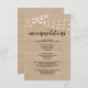 Cartão de acomodações de casamento com luzes de corda de fazenda rústica