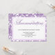 Cartão de inclusão de acomodações de casamento de renda roxa Lavender. Veja a coleção completa.