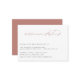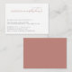 Cartões de acomodações de casamento com letra elegante. Características, gráfico de letra "acomodações" na cor rosa empoeirado e verso na cor sólida correspondente.