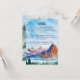 O cartão é projetado com montanhas, água, pinheiros e céu azul em aquarela. Você pode editar todos os detalhes do texto. O verso do cartão tem um close-up da floresta de pinheiros. Você pode adicionar quaisquer detalhes que precisar, por exemplo: informações de recepção, evento para adultos, endereço do site, informações de registro, acomodações, código de vestimenta, bar com pagamento em dinheiro, etc. A palavra "Detalhes" pode ser alterada para Recepção, Acomodações, Informações, etc. Este cartão combina com uma coleção de casamento na montanha em minha loja.