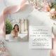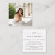 Eleve sua papelaria de formatura com este cartão de inclusão minimalista de 2,5" x 2,5", projetado para combinar perfeitamente com um anúncio de formatura. Com um layout limpo e tipografia refinada, este pequeno inserto fornece detalhes essenciais do evento em um formato elegante e fácil de ler. Perfeito para compartilhar informações da festa, instruções de RSVP ou notas adicionais sem sobrecarregar o cartão principal. Sua estética branca e nítida mantém a aparência elegante e coesa, tornando-o um complemento versátil para qualquer conjunto de formatura.