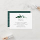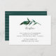 Projetado para combinar com nossa coleção de casamento de Coroa de Palmeira, este cartão de recepção botânico tropical verde e branco apresenta uma única folha de palma em aquarela verde escura com os detalhes da recepção do casamento, horário e endereço.