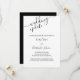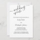 Cartão de atualização de casamento elegante e simples para notificar os convidados do adiamento do casamento. A design está em preto e branco com tipografia escrita escrita com letra mão para os nomes da noiva e do noivo e as palavras "atualização do casamento". O texto da amostra diz: "Devido a eventos recentes, o casamento de [seus nomes] foi adiado. Iremos informá-lo assim que estabelecermos uma nova data. Foi uma decisão difícil e nós o obrigados pela sua compreensão". O modelo está configurado para que você adicione seus nomes e edite o máximo de texto desejado.
