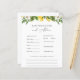 Cartão de conselhos e previsões de chás de fraldas com limões de aquarelas e verde. Uma maneira divertida de interagir com os convidados durante o seu chá de fraldas. Corresponde à Coleção de limões vintage no Compro Adore Paper Co Zazzle.