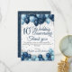 Um cartão de agradecimento de 10º aniversário de casamento glamouroso. Este agradecimento elegante de aniversário de casamento contém um design de balão prateado e azul de celebração. Personalize totalmente o texto para combinar com o seu próprio evento.