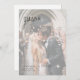Moderno, mínimo, 1 Foto "Obrigado!" Cartão de Casamento com filtro de fotos branco suave. O design apresenta uma foto em tamanho de cheio da sua escolha com um filtro branco suave aplicado automaticamente, dando-lhe um toque romântico e elegante. O layout limpo, aprimorado por uma combinação de fontes clássicas e com script, enfatiza a simplicidade e a sofisticação. Personalize o cartão com sua foto, nomes e data. Perfeito para casais que querem estilo chic e eterno.