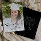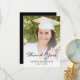 Simples obrigado de graduação moderna - sua placa com uma foto vertical personalizada. As palavras "Obrigado" aparecem na cobertura preta do script casual de escrita manual, com o nome do formando e o ano de graduação abaixo na fonte sans serif. Substitua facilmente a imagem de amostra pela foto do seu próprio formando. Uma tela de gradiente branco ajuda a garantir os pop de texto. Personalize o texto no verso com seu próprio obrigado.